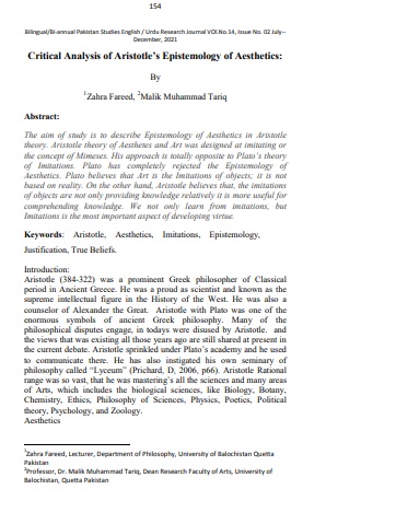 Critical Analysis of Aristotle’s Epistemology of Aesthetics