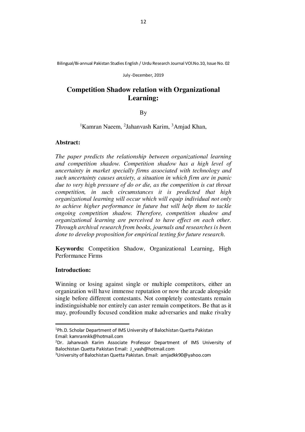 Competition Shadow relation with Organizational Learning