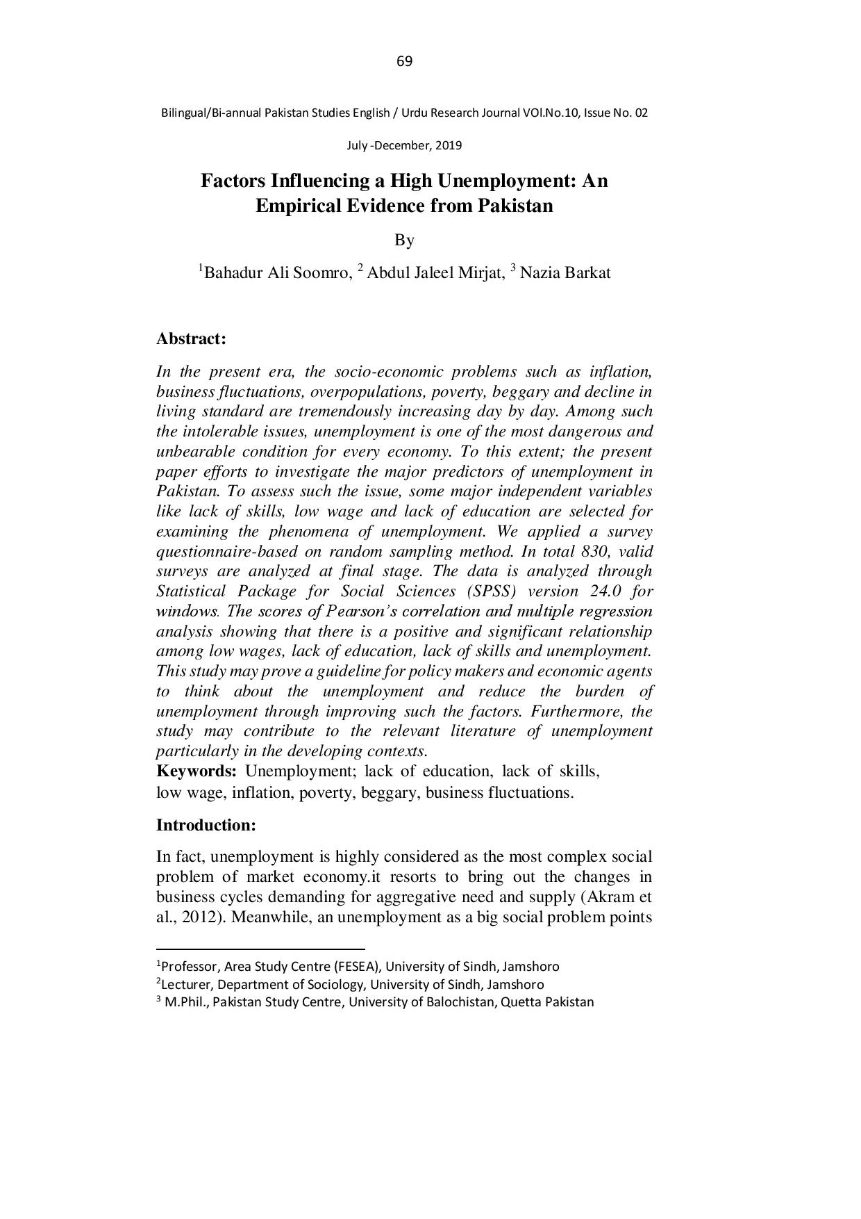 Factors Influencing a High Unemployment An Empirical Evidence from Pakistan