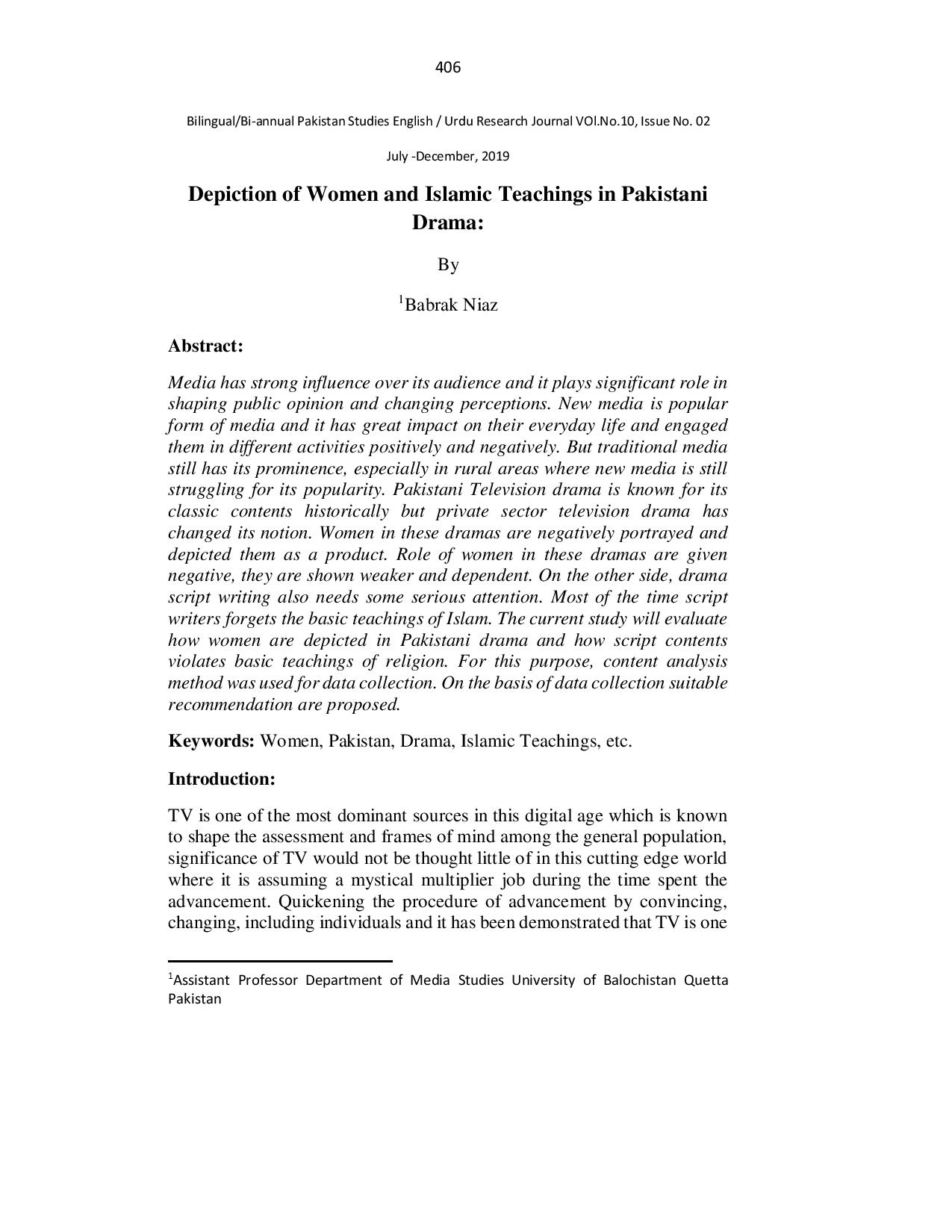 Depiction of Women and Islamic Teachings in Pakistani Drama