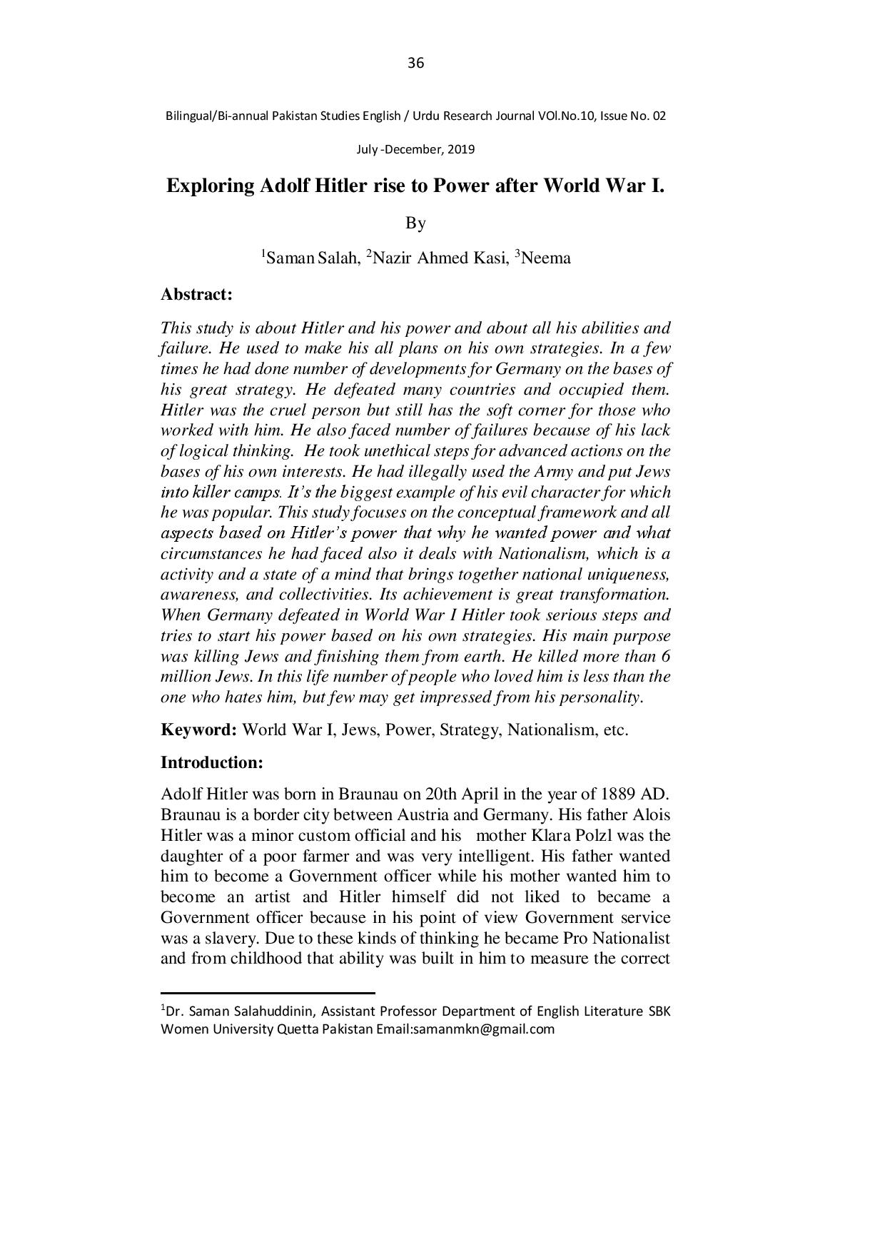 Exploring Adolf Hitler rise to Power after World War I