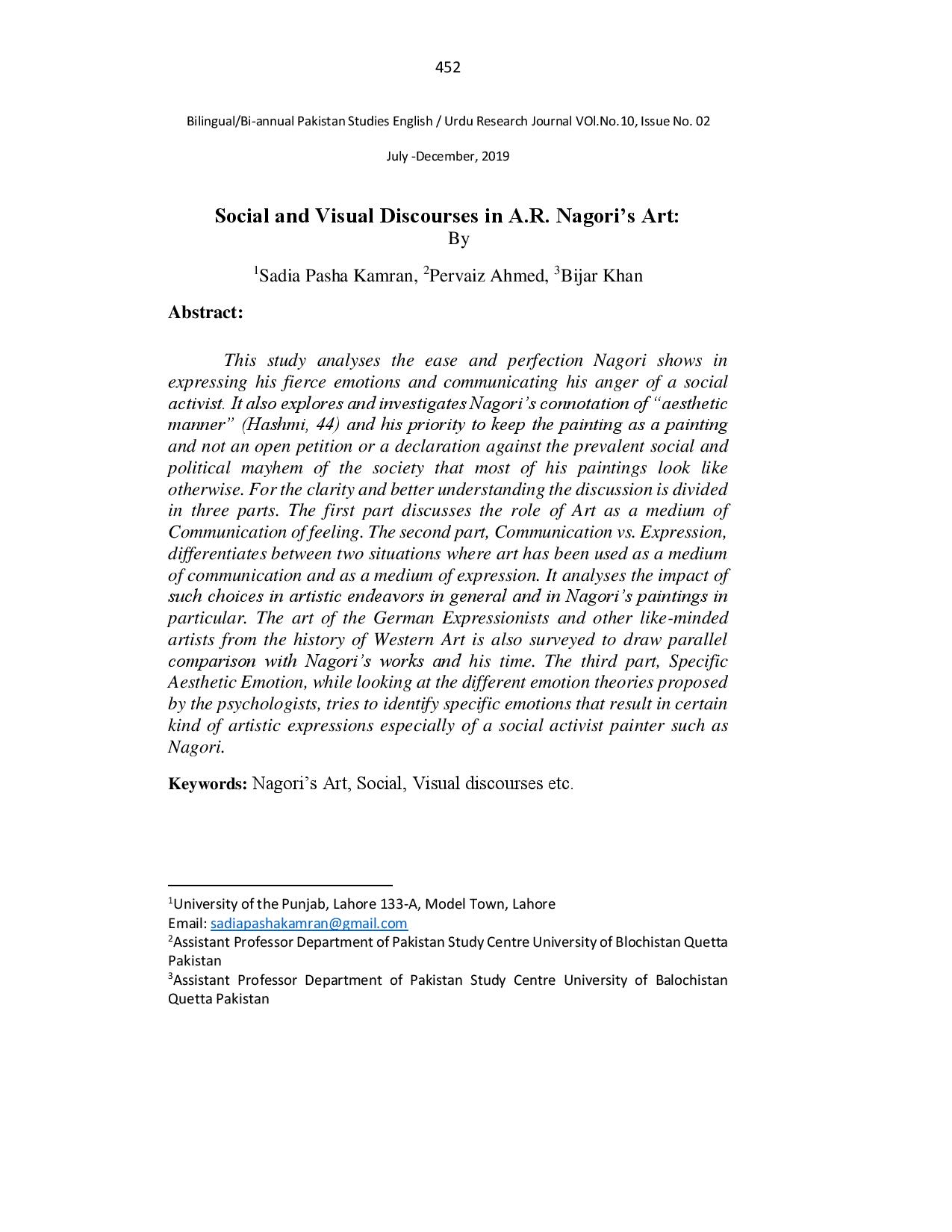 Social and Visual Discourses in A.R. Nagori’s Art