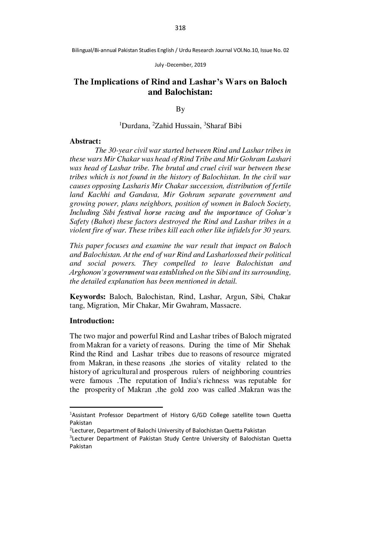 The Implications of Rind and Lashar’s Wars on Baloch and Balochistan