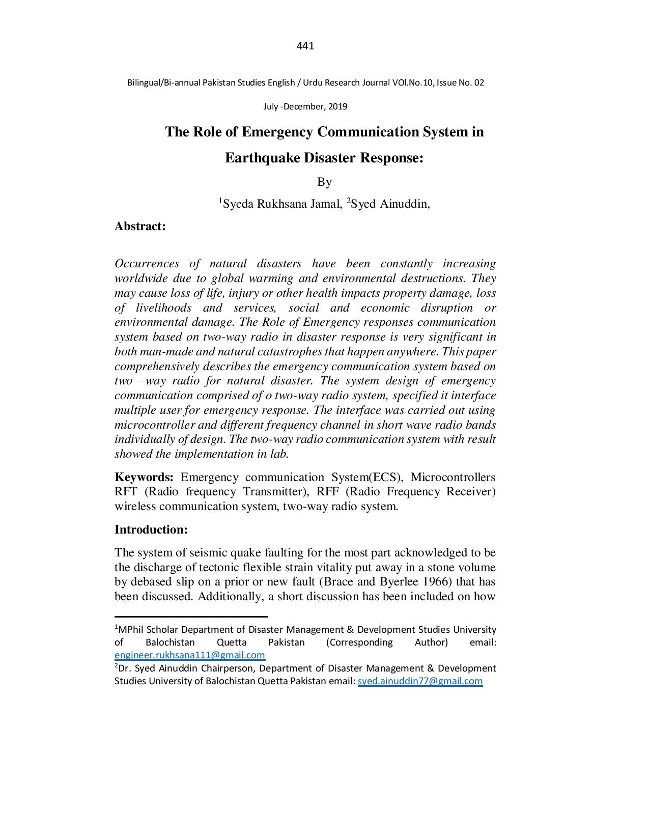 The Role of Emergency Communication System in Earthquake Disaster Response