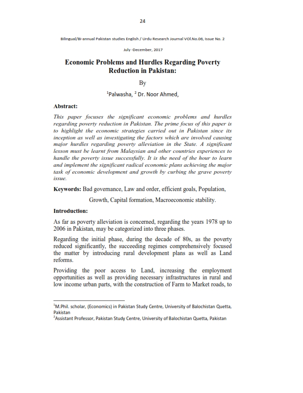 Economic Problems and Hurdles Regarding Poverty Reduction in Pakistan