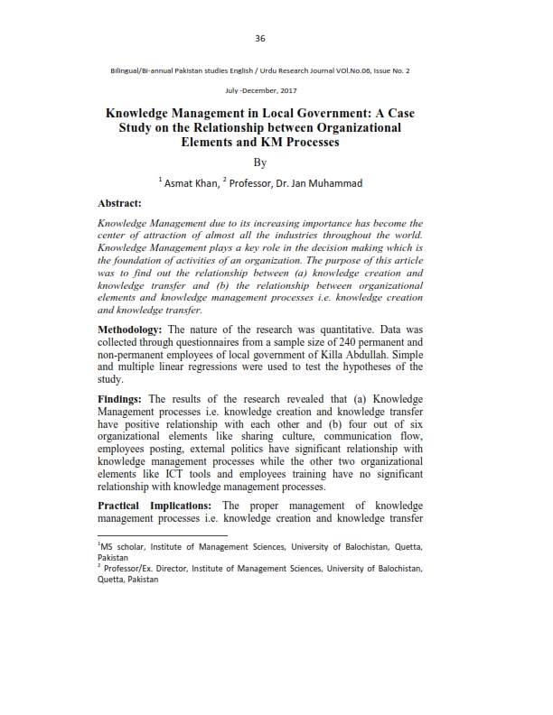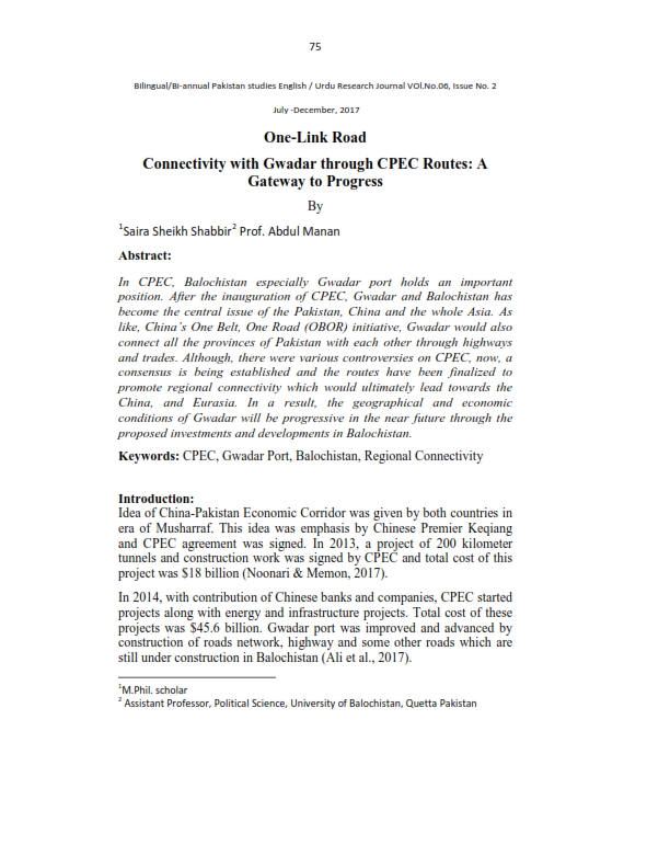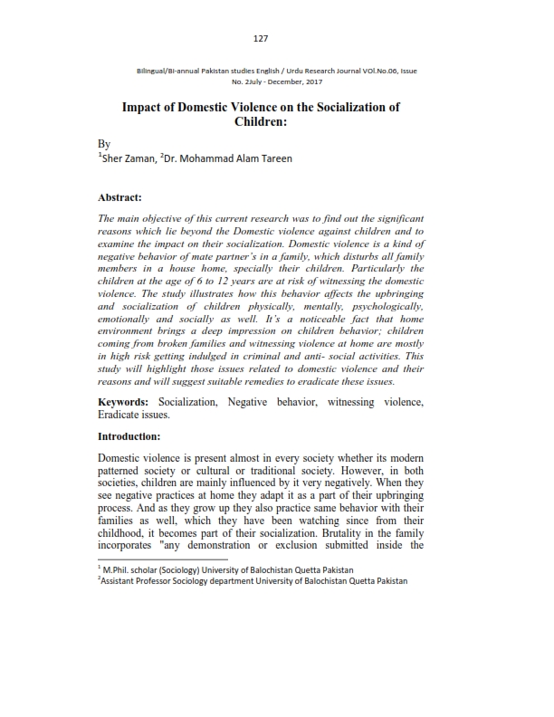 Vol. 6 No. 02 (2017): Pakistan Studies December-2017