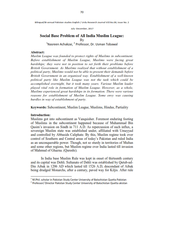 Social Base Problem of All India Muslim League