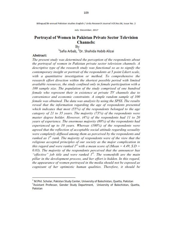 Portrayal of Women in Pakistan Private Sector Television Channels