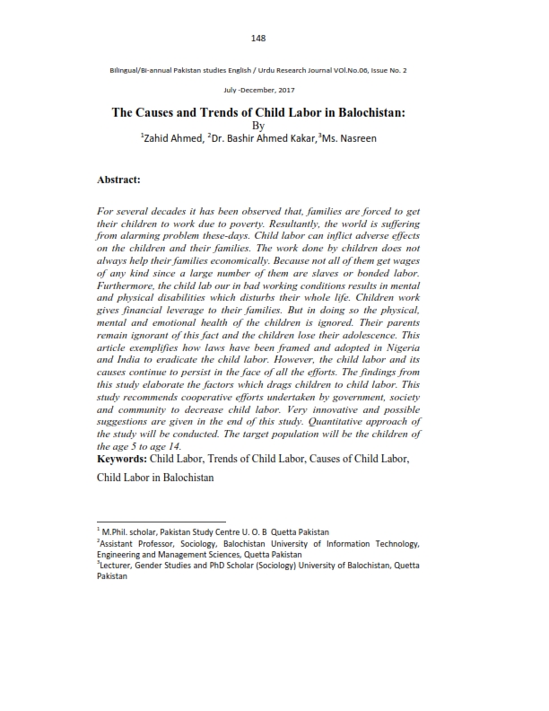 The Causes and Trends of Child Labor in Balochistan