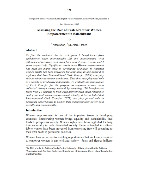 Assessing the Role of Cash Grant for Women Empowerment in Balochistan