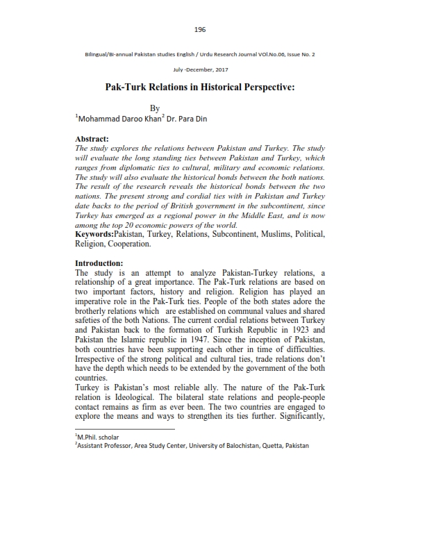 Pak-Turk Relations in Historical Perspective