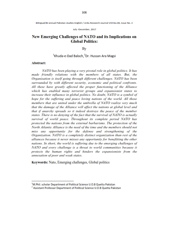 New Emerging Challenges of NATO and its Implications on Global Politics