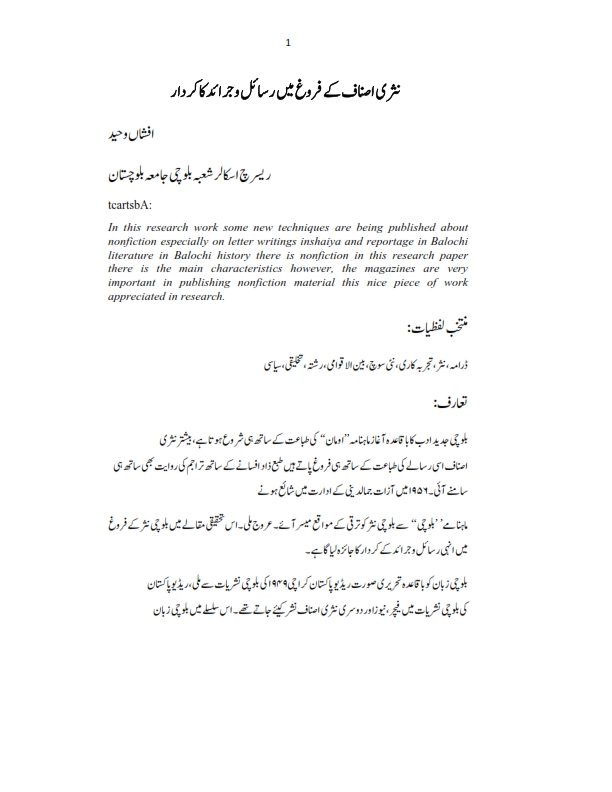 Nasri Asnaf K Farogh Main Rasail o Jaraid Ka Kirdar