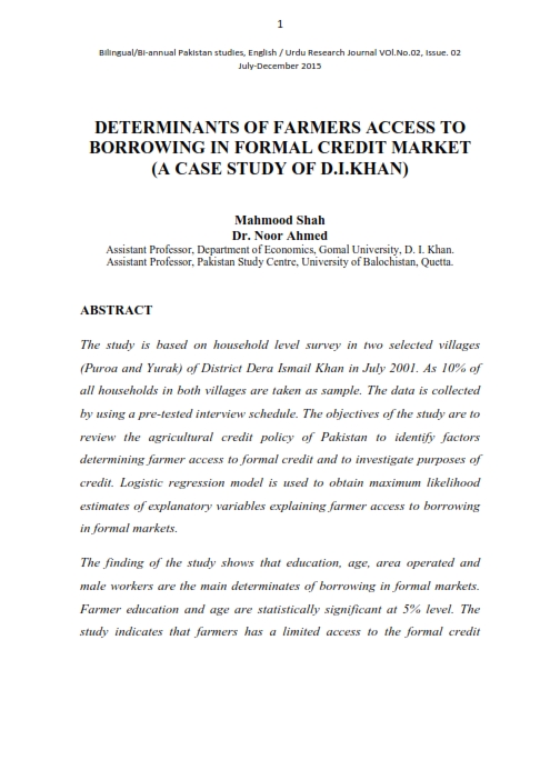 DETERMINANTS OF FARMERS ACCESS TO BORROWING IN FORMAL CREDIT MARKET (A CASE STUDY OF D.I.KHAN)