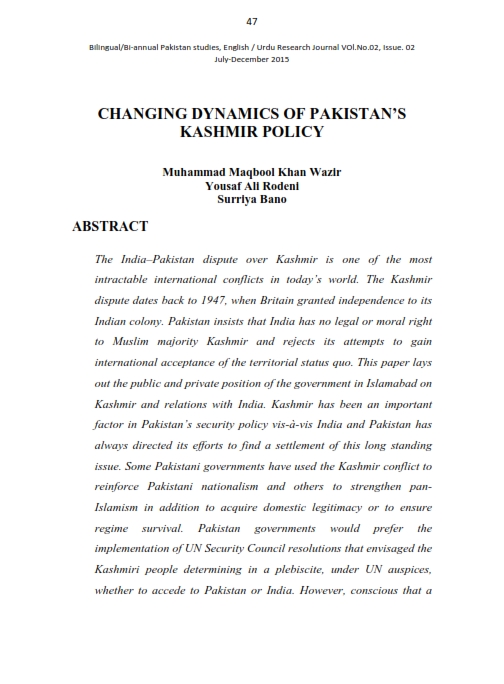 CHANGING DYNAMICS OF PAKISTAN’S KASHMIR POLICY