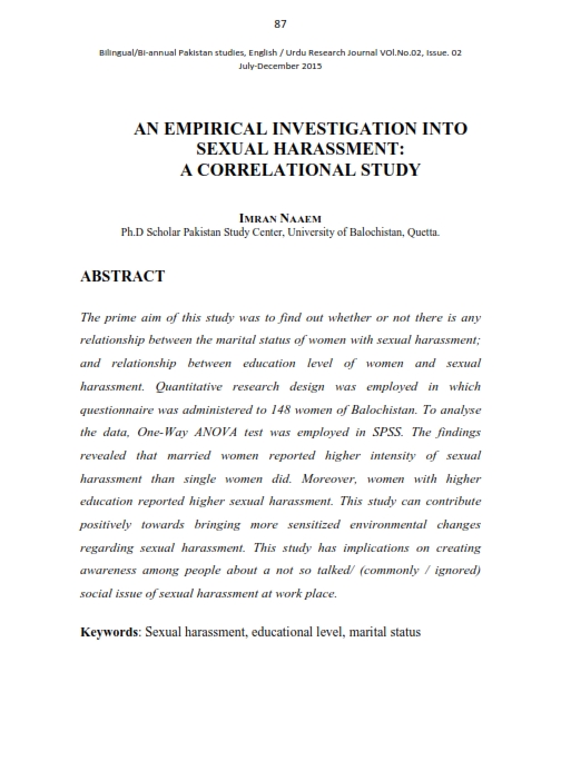 AN EMPIRICAL INVESTIGATION INTO SEXUAL HARASSMENT A CORRELATIONAL STUDY